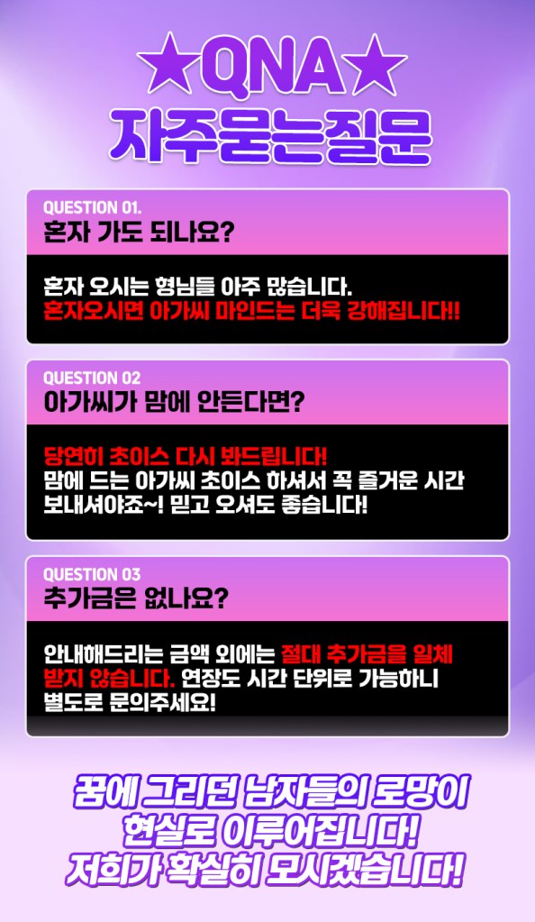 스트레스 받은 하루 날려버릴 수 있도록 최상의 서비스를 제공합니다.